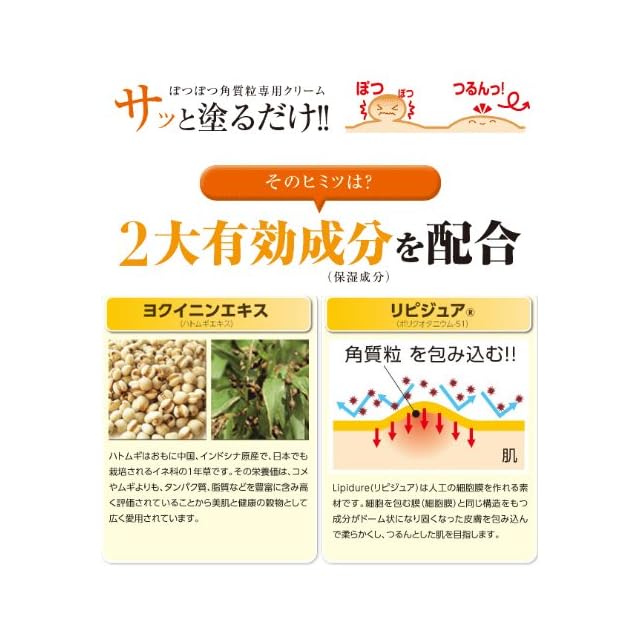 ハトムギ(ヨクイニン)を主成分としリピジュアを配合した軟膏タイプの保湿クリームです。