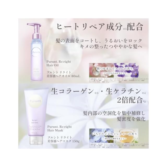《 Purunt. (プルント) とは 》美容室メーカーが366日かけて開発した貯水オイル美容をコンセプトにした「パサつき・乾燥」特化型ダメージケアブランド。うるおいを追求したサロン仕様の補修機能成分に加え、厳選浸透オイルと、みずからうるおうチカラ“ 美肌菌 ”に着目したうるおい処方の独自調合で、美容室帰りのような“ パサつき知らずのぷるんとした美髪 ”を叶えます。