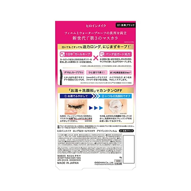 商品名:ヒロインメイク ロング&カールマスカラ アドバンストフィルム 01 漆黒ブラック 6g 強力カール お湯+洗顔料オフ