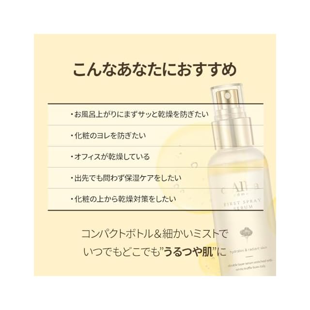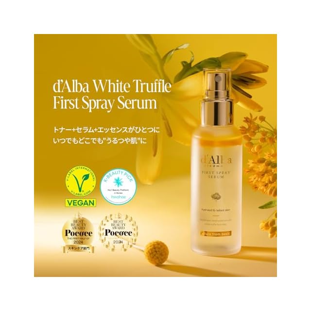 【d'Alba公式】ホワイトトリュフ ファースト スプレーセラム (100ml) ミスト化粧水 保湿ミスト 保湿セラム 潤いミスト エッセンスミスト 二層式 化粧水 敏感肌 乾燥肌 弾力 毛穴 キメ整える ノンコメド 無香料 化粧直し ヴィーガン | LIS MART