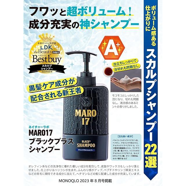 MARO17(マーロ17) ブラックプラス シャンプー [ハリコシのある黒髪へ] ジェントルミントの香り MARO17 マーロ17 350ml メンズ リキッド・液体 350ミリリットル (x 1) | LIS MART