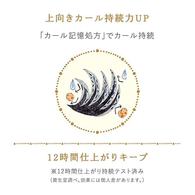 汗・皮脂・涙に強いウォータープルーフタイプで、1日中にじまず、長時間カールをキープします。