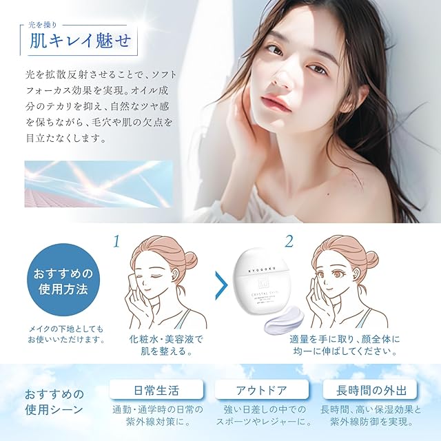 商品名:Kyogoku クリスタルスキン UV プロテクターセラム オブ ザ デイ 日焼け止め 美容液 SPF50+ PA++++ 透明感アップ UV美容液兼化粧下地 肌色補正