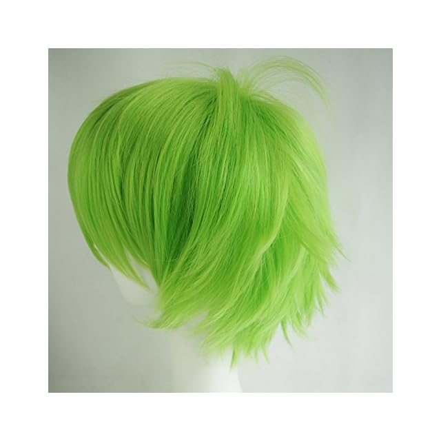 商品名:Cosplay 30cm メンズ ウィッグ 短い髪 20 色 ハンサム 男性 ふわふわ 毛 かつら コスプレ ウィッグ ダークブラウン (グリーン)