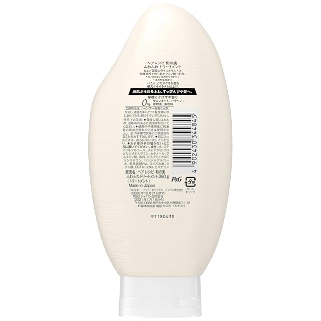 商品名:和の実 byヘアレシピ ヘアレシピ 和の実 ふわふわ ボリュームが気になる髪に ピュア国産ライスオイル配合 五つの成分無添加 トリートメント 350g 350グラム (x 1)