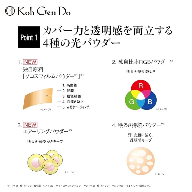 全成分:水、シクロペンタシロキサン、ジフェニルシロキシフェニルトリメチコン、(HDI/トリメチロールヘキシルラクトン)クロスポリマー、イソノナン酸イソノニル、PEG-9ポリジメチルシロキシエチルジメチコン、ペンチレングリコール、ジグリセリン、セスキイソステアリン酸ソルビタン、ラウロイルグルタミン酸ジ(フィトステリル/オクチルドデシル)、グリセリン、ホホバ種子油、スクワラン、シア脂、アセチルヘキサペプチド-8、α-グルカン、グルコシルセラミド、グルコシルヘスペリジン、加水分解コンキオリン、海塩、ガゴメエキス、トゲキリンサイ/ミツイシコンブ/ウスバアオノリエキス、ヨーロッパシラカバ樹皮エキス、ゲットウ葉エキス、チャ葉エキス、カンゾウ根エキス、セスキオレイン酸ソルビタン、(アクリレーツ/メタクリル酸ポリトリメチルシロキシ)コポリマー、塩化Na、シリカ、BG、ジメチコン、ナイロン-12、タルク、トコフェロール、ラウロイルリシン、ポリメチルシルセスキオキサン、セバシン酸イソステアリル、ミリスチン酸亜鉛、ステアロイルグルタミン酸2Na、リン酸アスコルビルMg、水酸化Na、ホウケイ酸(Ca/Al)、リン脂質、ハイドロゲンジメチコン、フェノキシエタノール、アルミナ、マイカ、酸化チタン、酸化鉄、水酸化Al、酸化スズ