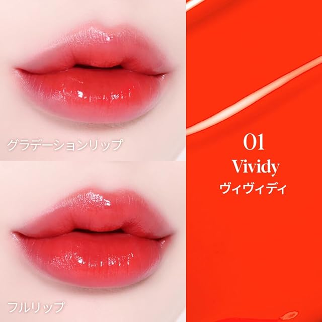 ムラにならないツヤジェル膜エフェクト: 軽い付け心地のぷるぷるジェル膜テクノロジーを採用。色は密着させずにツヤと分離し、しっとりとした透明感のある仕上がりを実現します。唇に均一なツヤ感を与え、自然な輝きを演出しながら色落ちを最小限に抑えます。