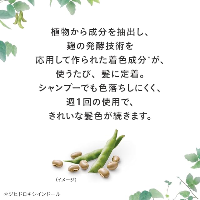 天然由来の着色成分*配合。白髪用カラートリートメント。放置時間たった5分。*ジヒドロキシインドール