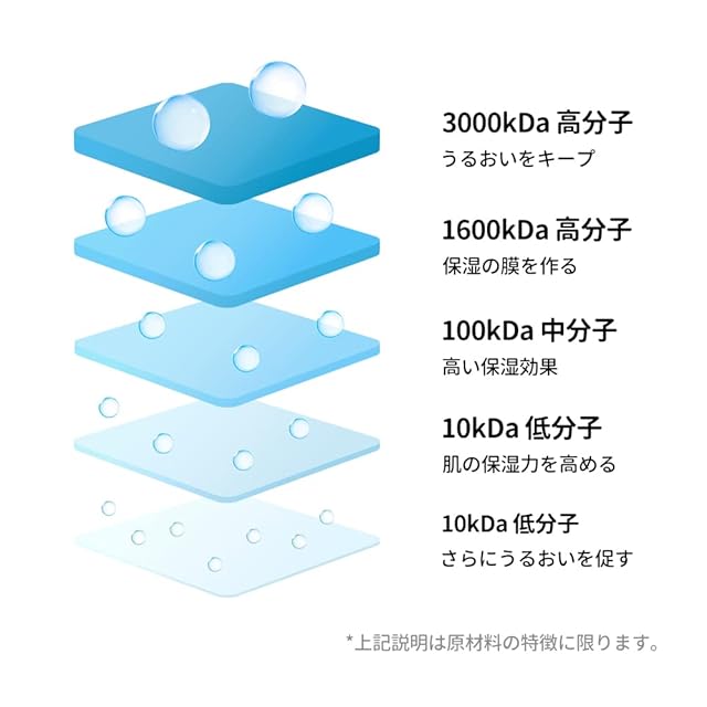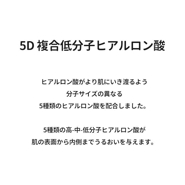 低・中・高分子の5種類のヒアルロン酸※1配合で、お肌の内側から外側まで素早く水分を補うことから「#3秒セラム」 の愛称を持ちます。※1 ヒアルロン酸Na、加水分解ヒアルロン酸、ヒアルロン酸クロスポリマーNa、加水分解ヒアルロン酸Na、アセチルヒアルロン酸Na(全て保湿成分)