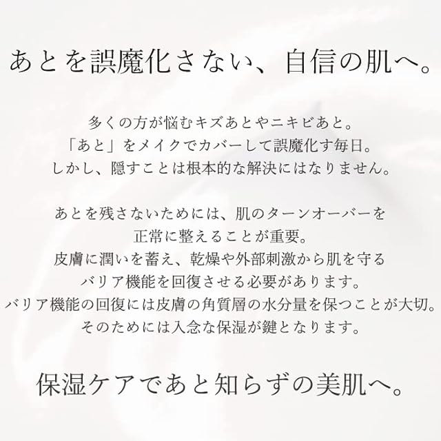 天然成分配合の肌をなめらかに整えるクリームです。完治したキズあとやニキビあとが気になる肌(ケロイドや色素沈着ではなく健全な状態に戻ったお肌のこと)、また妊婦のお腹の保湿ケアにも使用できます。独自技術のMESでベタつかず肌の深部(角質層)までスッと浸透します。