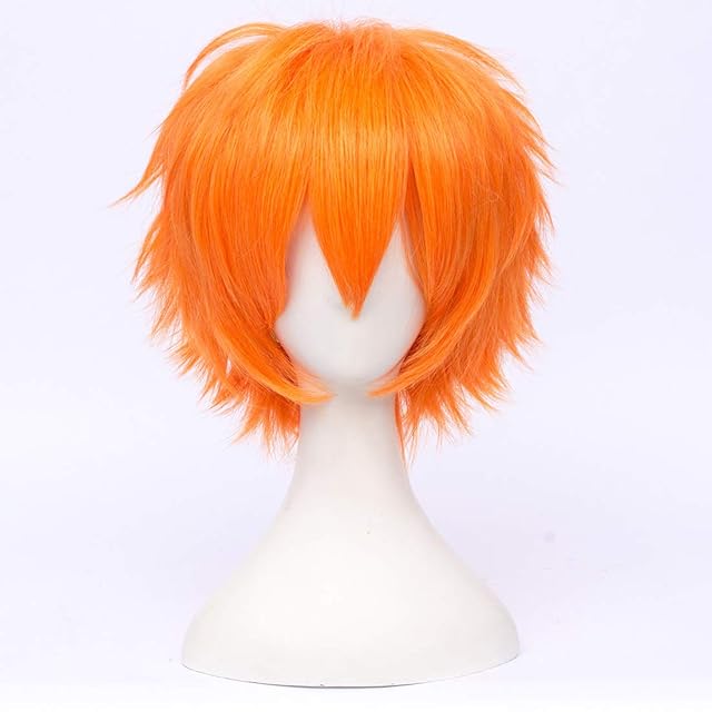 商品名:Cosplay 30cm メンズ ウィッグ 短い髪 20 色 ハンサム 男性 ふわふわ 毛 かつら コスプレ ウィッグ ダークブラウン (オレンジ)