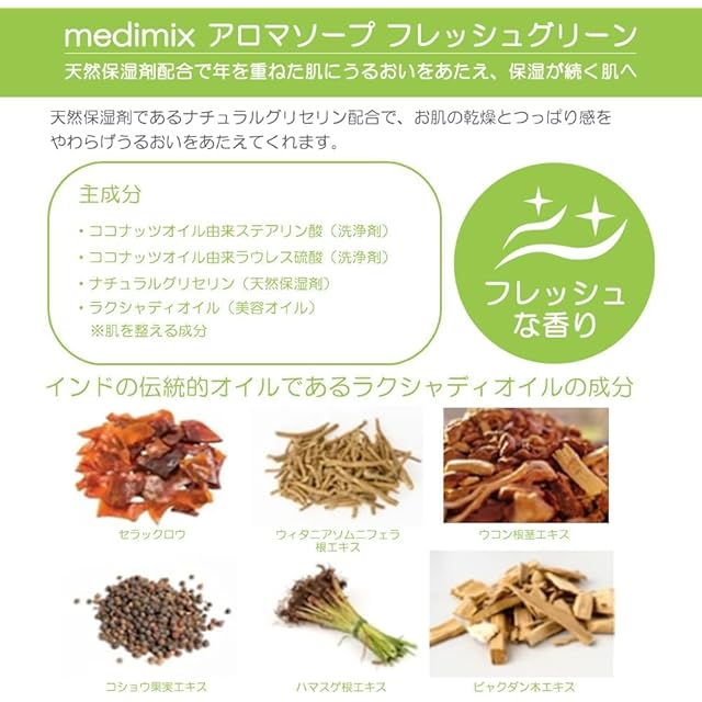 商品名:medimix 正規輸入品 メディミックス アロマソープ フレッシュグリーン 10個 125g MED-GLY 10P medimix Natural Glycerin
