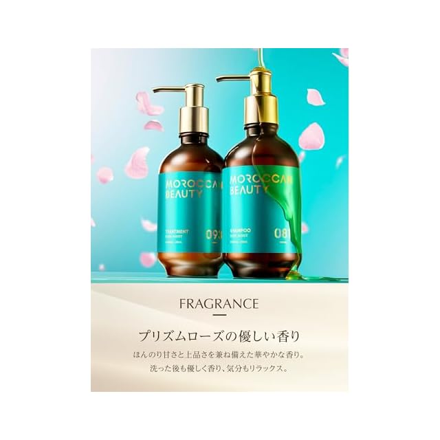髪乾燥を科学する、アルガンオイル*配合のシャンプー&トリートメント。モロッコ産のアルガンオイル*をはじめとする厳選した美髪成分を配合。オイルリッチな「モロッカングロス処方」で、熱・紫外線・カラー・乾燥などの4大ダメージも徹底ケア。髪の芯までダメージを補修し、360度どこから見てもアラのないオーロラのように美しく輝く艶髪へ導きます。シャンプーは、アミノ酸洗浄成分配合のきめ細やかな濃密な泡でしっとり洗いあげながら、汚れもすっきりオフ。トリートメントは、潤いのコートが髪に密着して浸透補修し、毛先までしっとりまとまる艶髪に。プリズムローズの香り。 * アルガニアスピノサ核油(保湿)