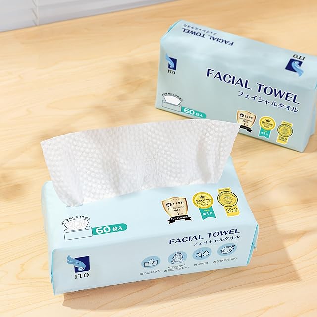 ITO クレンジングタオル フェイシャルタオル 60枚入×3個セット OEKO-TEX®認証 赤ちゃんにも優しい ITOオリジナル鮫小紋エンボス生地 敏感肌 肌荒れ対策 使い捨てタオル フェイスタオル使い捨て フェイスケア スキンケアタオル | LIS MART