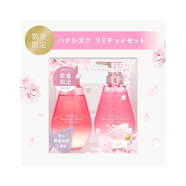 商品名:hiritu(ヒリツ) バランスリペア ハナシズク リミテッドセット シャンプー ヘアトリートメント 各410mL さくら&オレンジフラワーの香り ゆるぎ髪もうるぷる髪へ