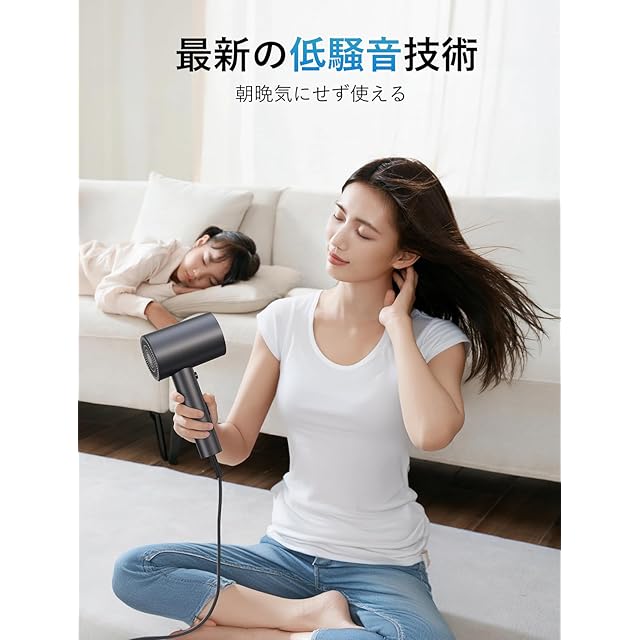 【超轻量&45dB低騒音】携帯ドライヤは手の平サイズで軽量なので、お子様でも使いやすく、髪を乾かすことができます。また、グリップ部分をひねると折りたためるので、コンパクトにまとめて持ち運びが簡単です。最新の低騒音技術により、会話しながらヘアドライヤーを使用することも可能です。深夜に髪を乾かす際やお子様が寝ている時でも、安心して使用できます。