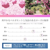 【花束に包まれるような気品溢れる香り】世界中の美しい花々をブーケに包み込んだ水々しいウォータリーフローラルノート。ベルガモットが爽やかさを放ち、鮮やかなピオニーやローズの華やかな甘さが上品な女性らしさをもたらします。澄み渡る水と花々のエッセンスが溶け合い、濃厚なブーケを妖精がひらりと舞うようにフレッシュで華麗な芳香を放ちます。