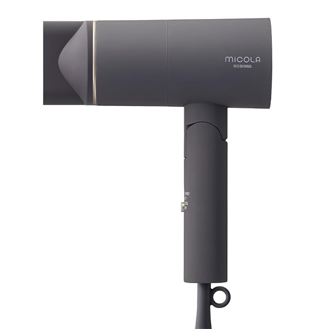 商品名:アイリスオーヤマ MiCOLA (ミコラ) ドライヤー 遠赤外線搭載 速乾 ダメージ軽減 大風量 イオンドライヤー アタッチメント付き HDR-M201-H ダークグレー
