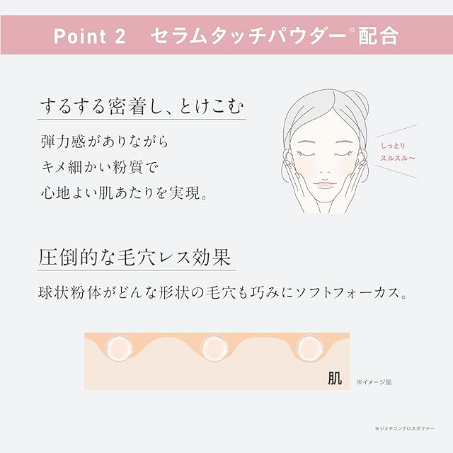 【粉感のない心地よいとけこみ感】コーセー史上最高レベルのやわらかなきめ細かい粉質で肌に心地よくフィットし、毛穴レスなツヤ肌が続きます。