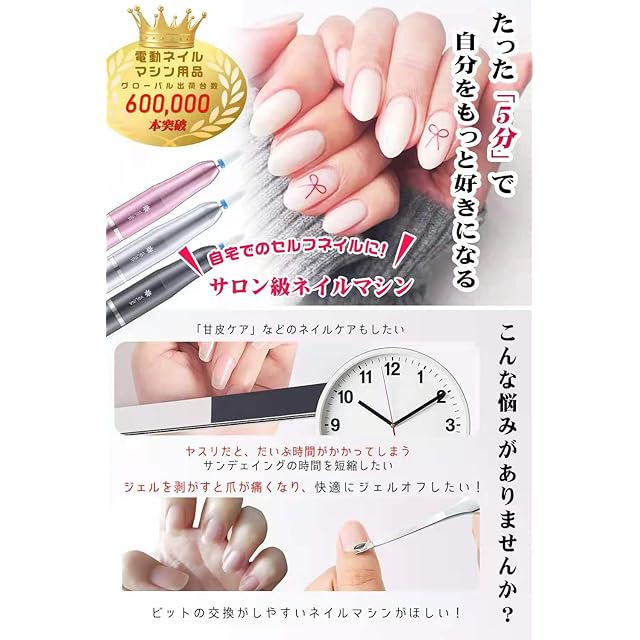 【新開発・人気ネイルリストが監修】より使いやすいネイルマシンを目指してプロのネイルリストの監修のもとで開発された電動ネイルマシン。総合ランキングナンバー1!海外でも大絶賛好評中!!ネイルオフの基本操作から自爪や甘皮処理などの指先のケアまで、この一本があれば十分!ビットの交換が楽々取扱説明書と見ればすぐに始められるため、初心者の方でも簡単にお使い頂けます。