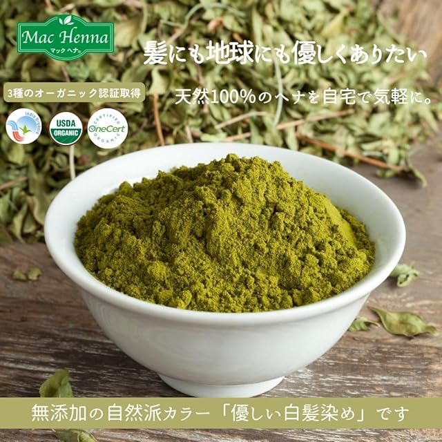 商品名:マックヘナ(MacHenna) ナチュラルダークブラウン【しっかり2度染め】 ヘナ60g+インディゴ60g 白髪染め 天然植物成分100% オーガニック マックプランニング