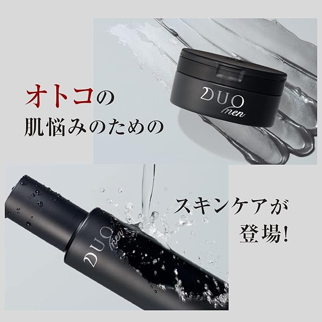 DUO MEN(デュオメン)ザ ウォッシュバーム。クレンジングクリームのDUOから、黒のメンズ用スキンケアラインが登場。オトコの肌悩み(ひげ剃り後の乾燥、カサつき、テカリなど)にアプローチする本格派のスキンケア。泡立て不要の洗顔フォームなので、面倒な人でも取り入れやすくW洗顔不要。さらに、洗顔後はオールインワンタイプのローションのみでお手入れ完了。乳液は不要。【汚れをしっかり落とす】肌に優しいのに、毛穴汚れや古くなった角質の汚れをキレイにオフするオトコのためのバーム。使えば使うほど、肌のコンディションを整える。【厳選された成分】こだわりのテクノロジーを使用し、1)植物から長年かけてゆっくり発酵された貴重な「ピート由来の泥炭(※1)」、2)自然由来の「クレイ(※2)」、3)8種の植物成分(※3)、4)ひえぬかオイル(※4)を贅沢に配合。【グローバルジェントル設計】男の力は強い。だからこそ、洗顔時の「肌を押す圧」を和らげるために厚みを残したクッション性をもたせ「こする力」を軽減。肌に伸ばした瞬間、とろりと溶け出すという相反する要素を高い次元で両立。思春期から大人の男性まで使える、普通肌, 脂性肌, 混合肌の方に。6種の精油によるナチュラルノーブル調の香り。※1炭(吸着成分)、※2タナクラクレイ(洗浄成分)、※3ツボクサエキス、オウゴン根エキス、ヨーロッパシラカバ樹皮エキス、カンゾウ根エキス、カミツレ花エキス、チャ葉エキス、イタドリ根エキス、ローズマリー葉エキス(保湿成分)、※4ヒエヌカ油(保湿成分)