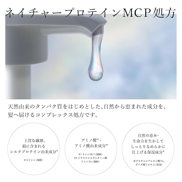 【ネイチャープロテインMCP処方】天然由来のタンパク質をはじめとした自然から恵まれた成分をブレンドした処方(シャンプー・トリートメント)