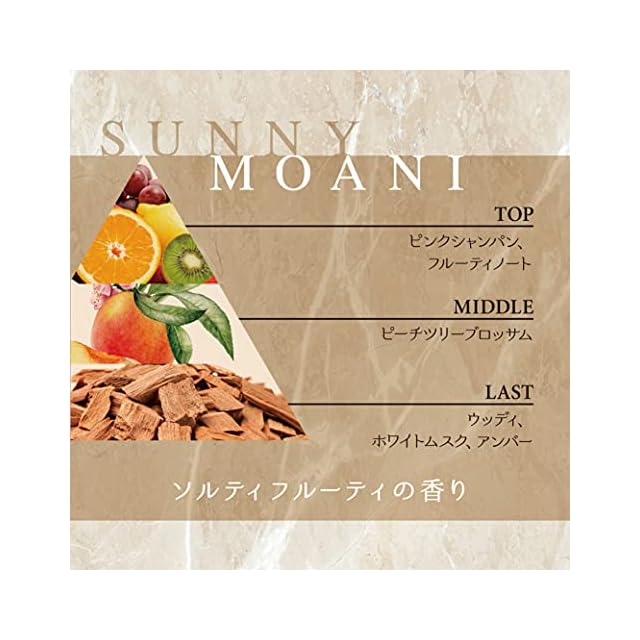 プア ナナラ サニーモアニ オードトワレ 香調:ソルティフルーティ 海岸を歩いている時に流れてくる心地よい潮風の香りを 表現した、遊び心溢れる魅惑的で エフォートレスな女性らしさを感じられる香り。