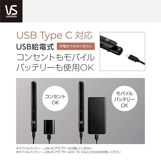 商品名:ヴィダルサスーン ヘアアイロン モバイルストレートアイロン USB給電式 海外対応 2段階温度調節 ポーチ付き ブラック VSI-1051/KJ