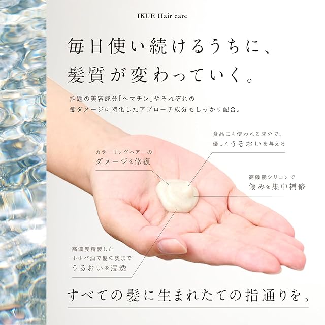 【豊富な保湿と補修効果】ホホバ油と他の保湿成分が髪の芯まで潤いを与え、ダメージヘアを内部から修復して、触れるたびに柔らかくふわさらな髪へと導きます。