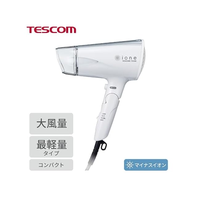商品名:テスコム ヘアドライヤー マイナスイオン 折りたたみ 大風量 軽量 ライトシルバー TD335B-S