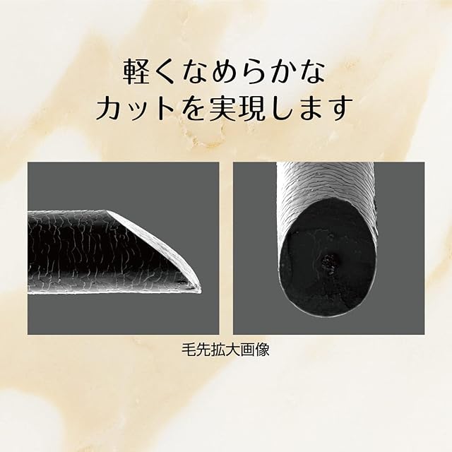 ● レザーカットは、ハサミでは難しいやわらかい質感に仕上がるのが特長で、パーマやヘアアイロンを使ったスタイルにも良くなじみます。また、削りたい部分を削りたい分量だけ的確にカットできるので、髪を切りすぎる心配もありません。