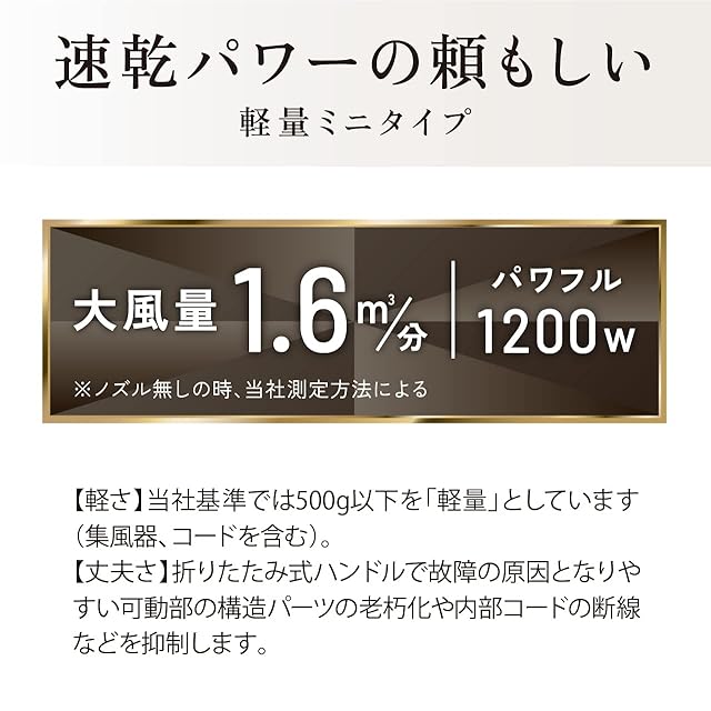 速乾大風量:パワフル1200W。大風量1.6㎥/分