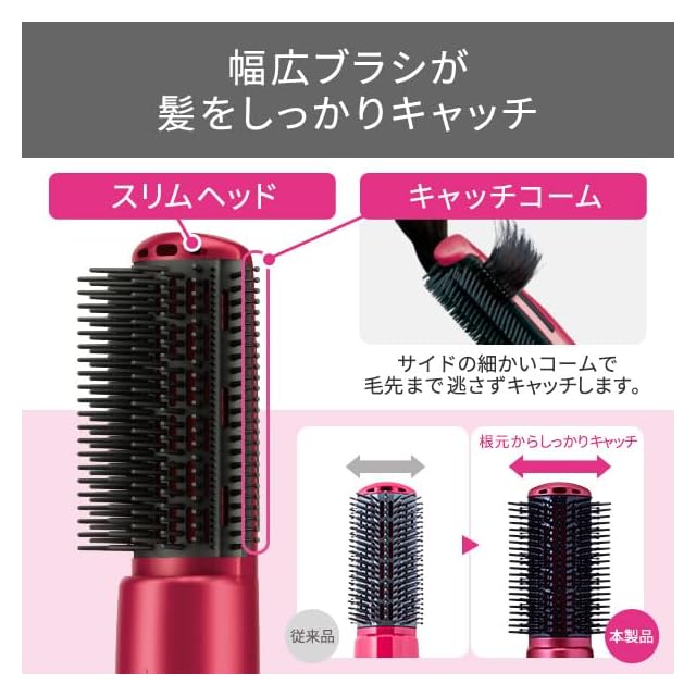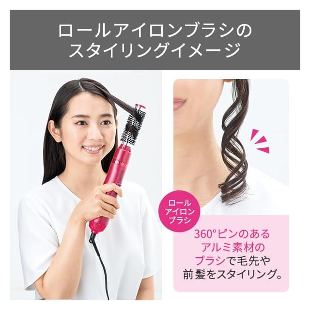 幅広のワイドキャッチブラシと、360度ピンのあるアルミ素材のロールアイロンブラシが付属。ブラシを使い分けることで、根元のボリュームアップやくっきりカールなど、幅広いスタイリングができます。