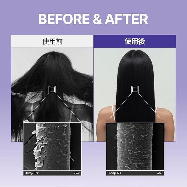 [使用方法] シャンプー後の濡れた髪に10~15cm離してスプレーを噴射してください。(シャンプー後に水気を軽く拭き取ってください。) その後、ドライヤーで髪を乾かしてください。