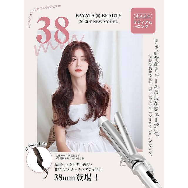 BAYATA コテ 38mm ヘアアイロン カール アイロン【キープ力アップ・130℃~220℃】38ミリ 10段階温度調節可能 プロ仕様 全髪質対応 100V-240V海外対応 60分自動OFF ロングヘア ミディアムヘア 韓国風巻き髪 レイヤーカット | LIS MART