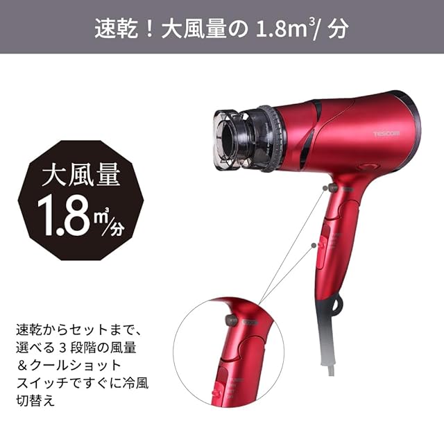 商品名:テスコム ヘアドライヤー マイナスイオン 折りたたみ 大風量 ラク抜きプラグ パープル TD430B-V
