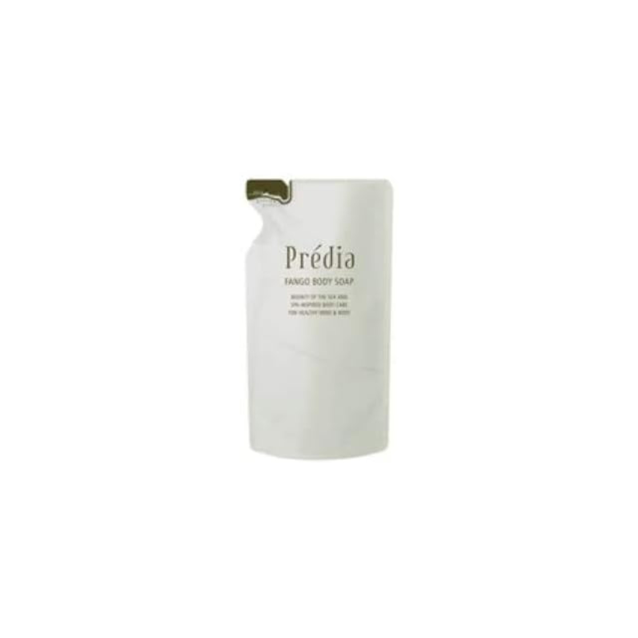 天然ミネラル泥配合のボディソープ。 <br><br>もっちり濃密な泡で心地よく包み込み、皮脂や老廃物をすっきり洗浄。<br>しっかり皮脂を吸着するので、背中のニキビやザラつきでお悩みの方におすすめです。<br>泡切れがよく、さっと洗い流せるのもポイント。<br>ハーバルフローラルウッディの海を思わせるさわやかな香りです。<br><br>【セット内容】<br>・コーセー プレディア Predia ファンゴ ボディソープ na 詰替え用 レフィル 内容量 500mL×2