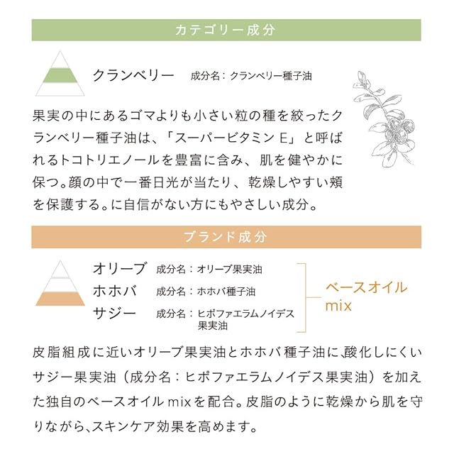 全成分:成分:タルク、シリカ、スクワラン、ジステアリン酸Al、ステアリン酸水添ヒマシ油、オリーブ果実油*1、ホホバ種子油*1、ヒポファエラムノイデス果実油*1、クランベリー種子油*1、ビルベリー葉エキス*2、カルナウバロウ、(+/-)酸化チタン、酸化鉄、グンジョウ、マイカ、カルミン、水酸化Al *1オーガニック成分 *2ワイルドクラフト成分