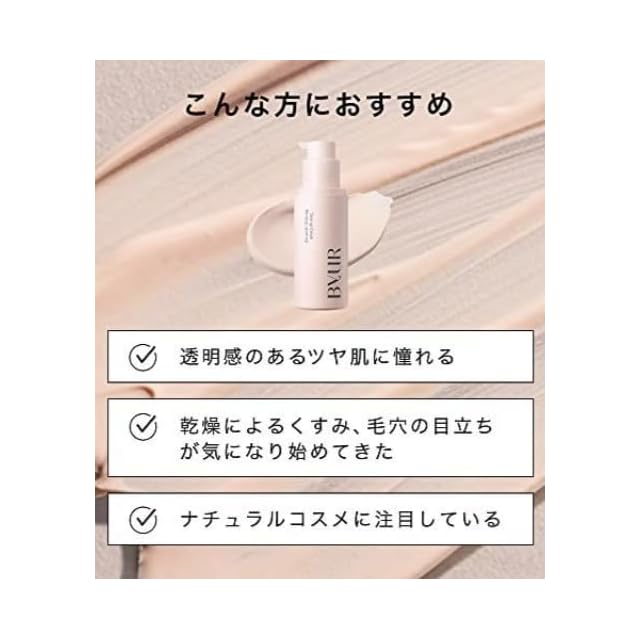 トーンアップピグメントとパールによって明るさを演出し、ByUR の「毛穴管理*」メソッドを元にした美容成分が、 うるおい生まれのピュアな透明感を演出。*乾燥した毛穴にうるおいを与えて目立たなくすること