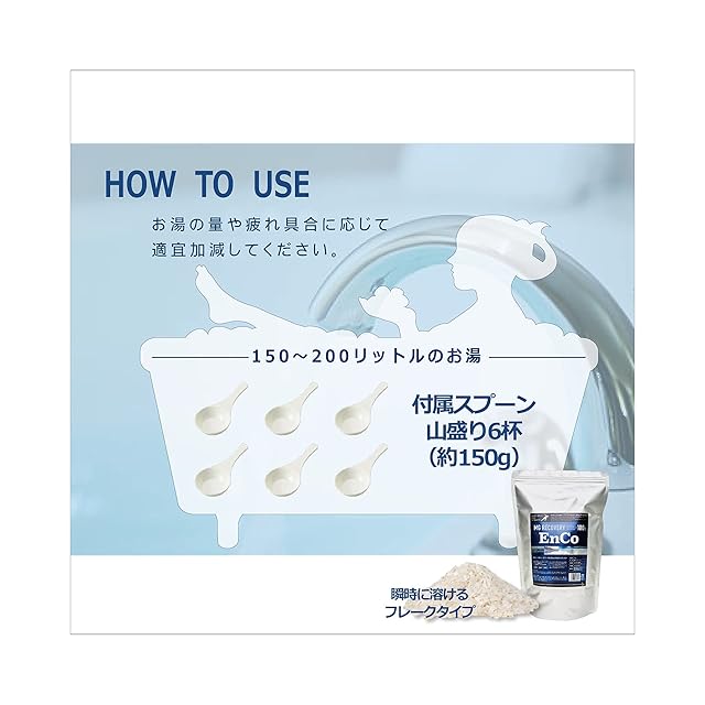 【運動をする人のバスソルト】3冠を達成!</br> 【MG RECOVERY EnCo】はスポーツやハードワークをする人の為のバスソルトです。</br> </br> ●アスリートが選ぶバスソルト No.1</br> ●ジムのトレーナーが勧めるバスソルト No.1 他</br> ※日本マーケティングリサーチ機構調べ</br> </br> 【EnCo】はグレイトソルト湖で精製された高濃度の天然塩化マグネシウムとミネラルが含有する高品質なバスソルトです。普段からスポーツやハードワークをしたり、日々筋肉を酷使するアスリートのバスタイムに最適です。</br> </br> ●ミネラルの宝庫グレイトソルトレイクの湖水を使用したバスソルトです</br> 米国ユタ州にあるグレイトソルトレイクは琵琶湖の7倍もの面積の西半球最大の塩水湖です。その塩分濃度は死海と同レベルの約30%と高濃度でミネラルの宝庫とも呼ばれています。</br> </br> ●こだわりの精製方法</br> 大自然の恵みであるグレイトソルトレイクの湖水を天日干しし、不純物除去の工程を経てフレーク状に精製されます。</br> </br> ●カラダが喜ぶMg(マグネシウム)温浴</br> マグネシウムは身体を動かす人には欠かせない必須ミネラルです。</br> </br> ●合成着色料や香料等は完全不使用</br> </br> ●内容量3㎏で約20回分使用できます。計量スプーン付き</br> </br>