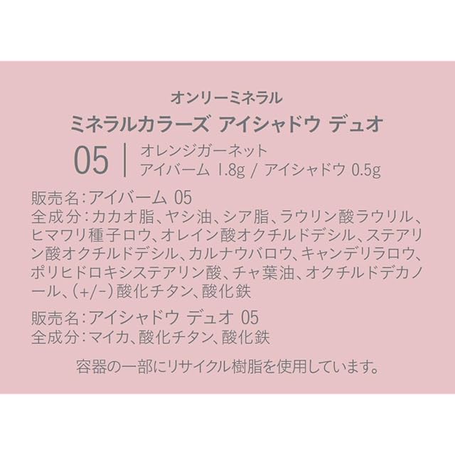 商品名:オンリーミネラル(ONLY MINERALS) ミネラルカラーズ アイシャドウデュオ 05オレンジガーネット 保湿バーム ミネラルアイシャドウ