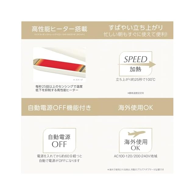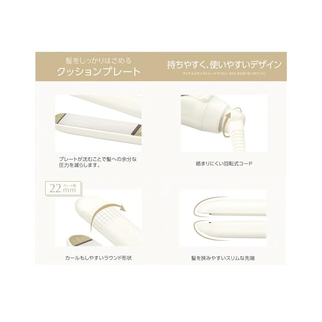 商品名:コイズミ ヘアアイロン ストレート マイナスイオン サロンセンス スタンダード シルキーモイスト 22mm幅プレート 海外対応 2段階温度調節 ホワイト KHS-8420/W