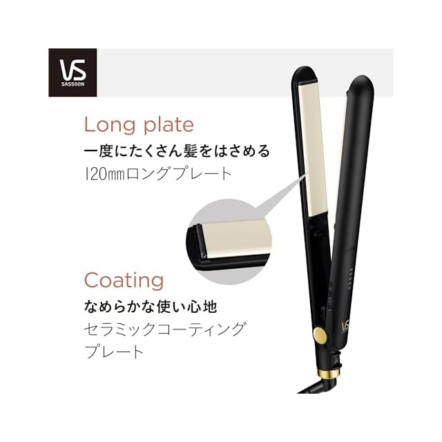 商品名:ヴィダル サスーン ストレート ヘアアイロン マイナスイオン 海外対応 5段階温度調節 ロングプレート ブラック VSI-1025/KJ