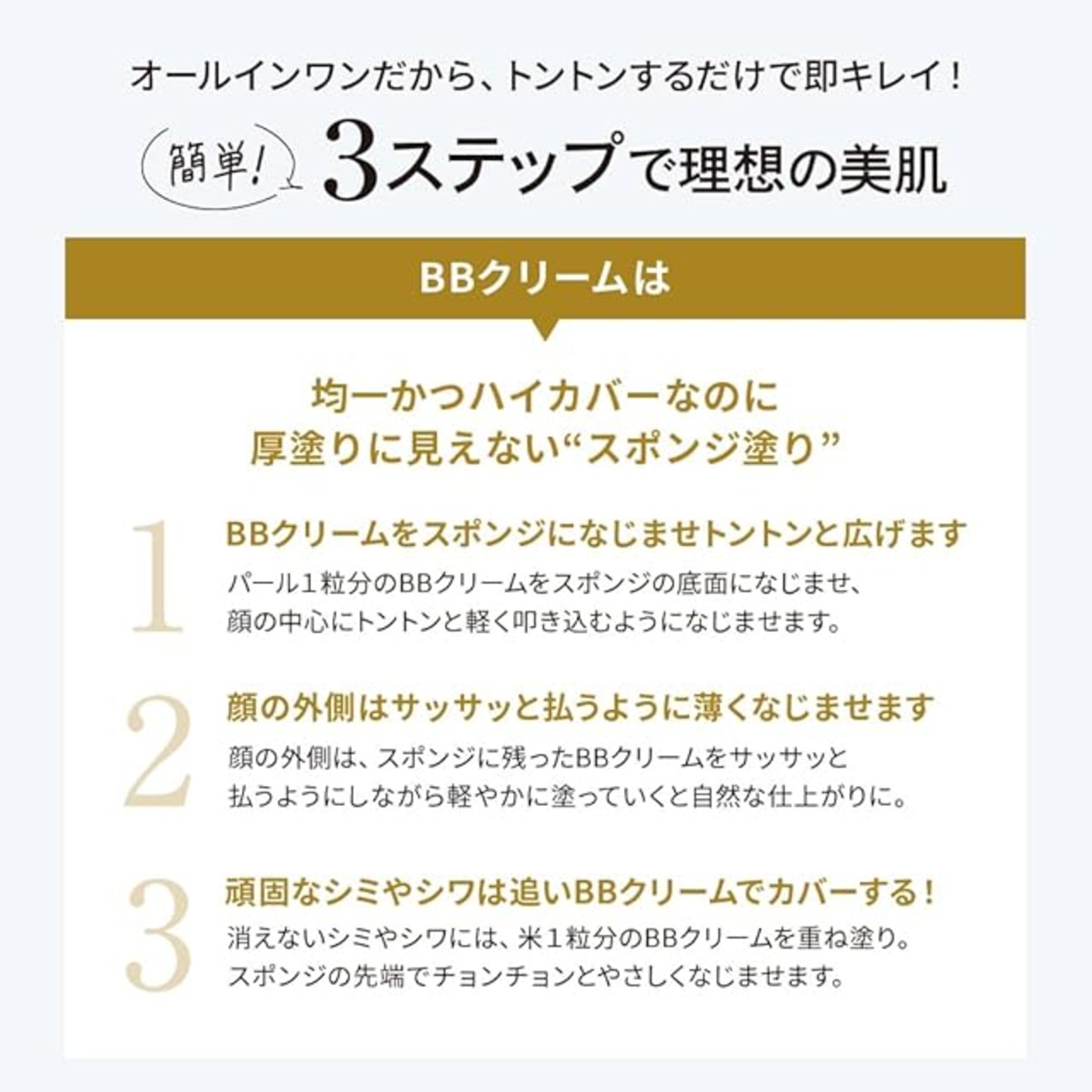 【毛穴補正も備えた高浸透ビタミンC配合BBクリーム】凹凸を補正し、なめらかな肌に見せる毛穴レスパウダーを新配合。さらにトリプルビタミンCを配合し、なめらかで毛穴レスな肌へ。 【皮脂ブロック技術でメイク崩れを予防】夕方になっても日中の肌を持続ケアします。