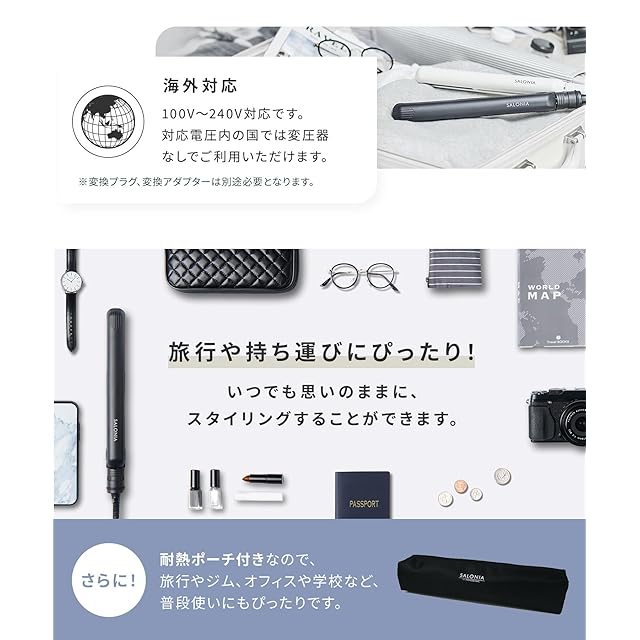 商品名:SALONIA サロニア ミニ ストレートアイロン ヘアアイロン 耐熱ポーチ付 SL-010SB ブラック