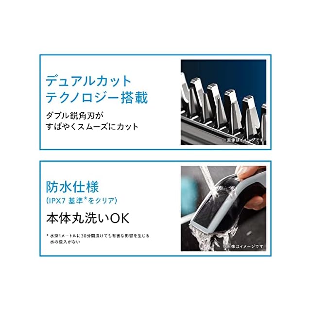 防水仕様でお風呂場でも使用可能。散髪用ケープ付属。