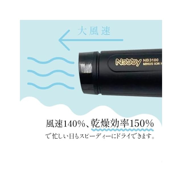 商品名:ノビー(Nobby) マイナスイオンヘアドライヤー NB3100 大風量 速乾 1500W 理美容専売 (ブラック)