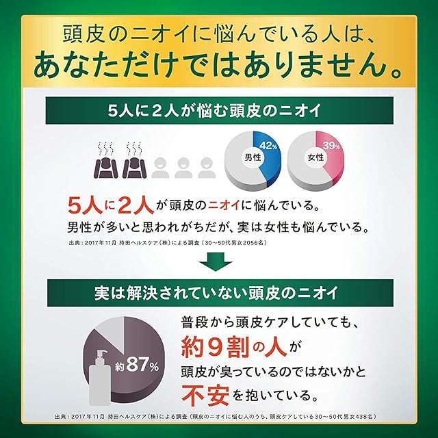 消臭成分緑茶乾留エキス、抗酸化・殺菌成分オクトピロックス(R)が頭皮のニオイを防ぎます。