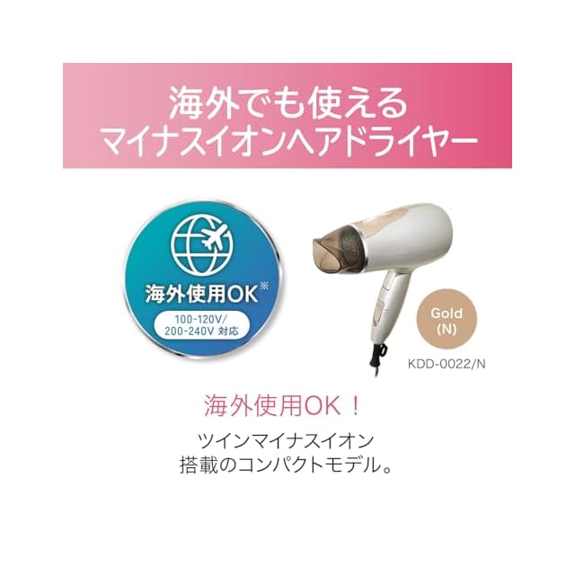 商品名:コイズミ ヘアドライヤー ツインマイナスイオン 海外対応 軽量 コンパクト ゴールド KDD-0020/N